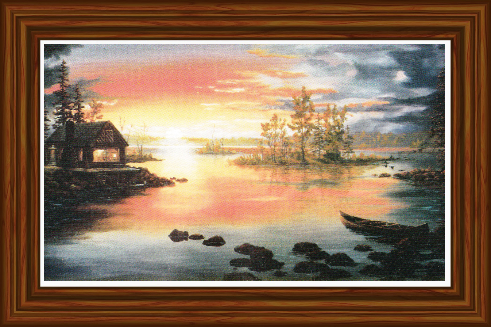 This cabin would be the perfect getaway for a quiet weekend. Whoever is staying here probably paddled to the other side to go for an evening hike. As geese land on the calm water the magnificent sunset makes us all wish we were “At the Lake”.