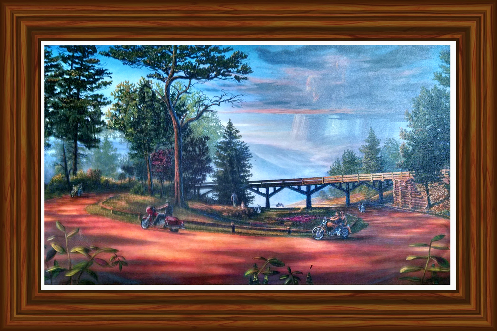 This was a sacred area to the Native Americans that inhabited the hills for thousands of years. Native American leader Sitting Bull (hidden image in the trees), certainly saw what the future had in store for his people once gold was discovered in the hills (miner panning in the center pine tree). More people would soon arrive. Some by stagecoach (hidden image on the left), and eventually in droves by train (locomotive hidden on the right).